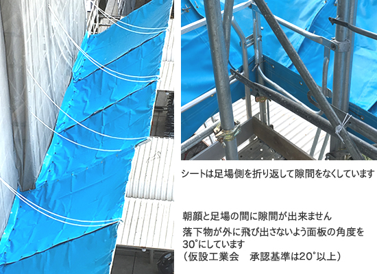 オプション部材の隙間塞ぎシートを用いことでどんな足場でも隙間なく設置できます